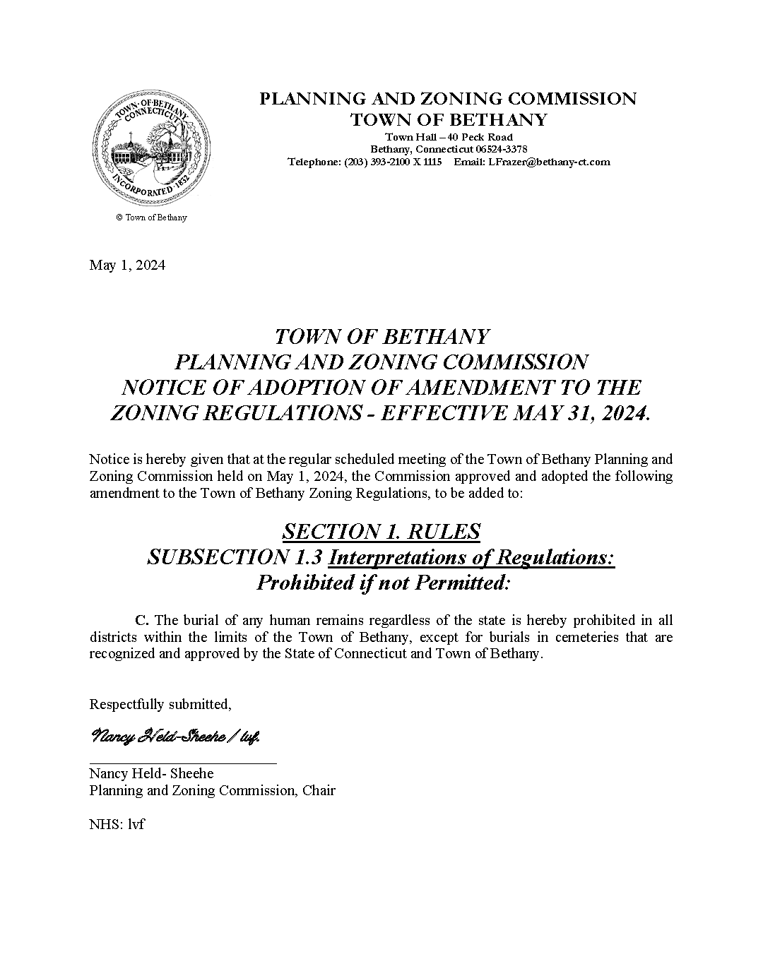 5/16/2024 - Notice of Adoption of Amendment - Planning & Zoning - Effective 5/31/2024